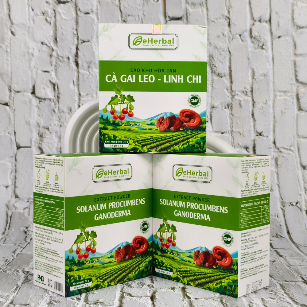 Cao khô hòa tan Cà gai leo Linh chi của Gold Herbal: Một giải pháp tiện lợi và hiệu quả để bảo vệ sức khỏe lá gan. Sản phẩm là sự kết hợp của hai loại thảo dược quý là Cà gai leo và Linh chi, được bào chế dưới dạng cao khô hòa tan tiện lợi. Với công nghệ chiết xuất hiện đại, sản phẩm không chỉ giữ trọn vẹn tinh chất của dược liệu mà còn giúp bạn dễ dàng bổ sung hàng ngày, hỗ trợ giải độc và tăng cường chức năng gan một cách tự nhiên.